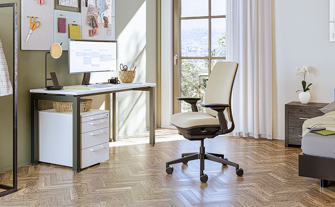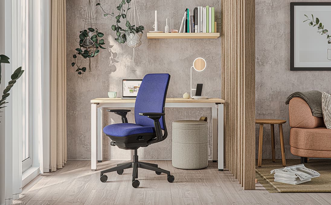 The Steelcase Amia office chair features LiveLumbar™ technology, 4D armrests, adjustable depth and adaptive padding.